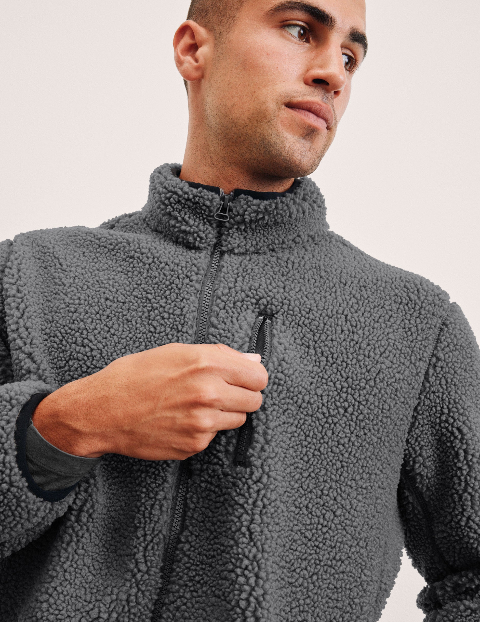 Discover your ultimate winter essential in the relaxed fit Boucle Fleece Men's Zip Jacket. Designed thoughtfully with a 2-way zipper front and deep drop-in pockets for storing your essentials.